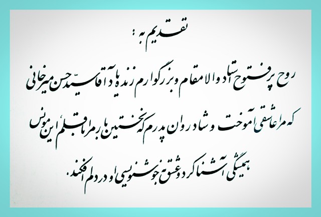 با تاسف فراوان باید سده اخیر را دوره رکورد شکسته نگاری نامید، زیرا بی توجهی به این هنر با گذشت زمان چنین نتیجه داد که اکثر متون و دست نوشته هائی که به خط شکسته، از پیشینیان به یادگار مانده، ناخوانا بنماید. وجود این خلاء بزرگ فرهنگی و بی گانه شدن مردم با خوشنویسی سبب شد که این آثار در موزه ها و کتابخانه ها، محبوس مانده و ناگزیر گرد فرآموشی بر آنها بنشیند، تا آنجا که حتی نام مشاهیر و نام آوران این قلم نیز از یاد برود یکی از نتایج زیان بار وضعیت یاد شده آن بود که مردم ما، به خصوص نسل جوان – به دلیل ناآشنایی با رموز و قواعد شکسته و نداشتن استاد و معلم مجرب – به جای بهره وری از این خط زیبا و جلوه های خوش آن که صرفا به منظور تند نویسی طراحی شده است – امروزه دارای خطی نازیبا و ناموزون شبیه «نسخ روزنامه ای» هستند که این خط به دلیل ضعف در تکنیک کاربردی خود، از حرکتی کُند برخوردار است بر آن شدم که نتیجه تحقیقات و مطالعات بیش از سه دهه خود را رهآورد صاحب نظران و هنرمندان کرده و کتاب مرجع حاضر را پیشکش آنان کنم که در برگیرنده مجموعهای از برگزیده آثار استاد در موزهها و کتابخانهها و گنجینههای خصوصی داخل و خارج از ایران بوده و نیز همهی اطلاعات مربوط به خطّ شکسته همچون سیر تحول، شیوه، سبک شناسی و معیارهای شناسایی خطوط ایشان و سایرمطالب مربوط به زندگی و شرایط اجتماعی زمان وی را در بر داشته باشد صفحه معرفی استاد فرزانه جناب آقای غلامرضا مشعشعی |