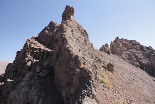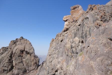 تصویر بالا، سرقله جنوبی یکی از قله های جنوبی کله سنگ تصویر پائین، دیواره سنگی در شمال همان قله